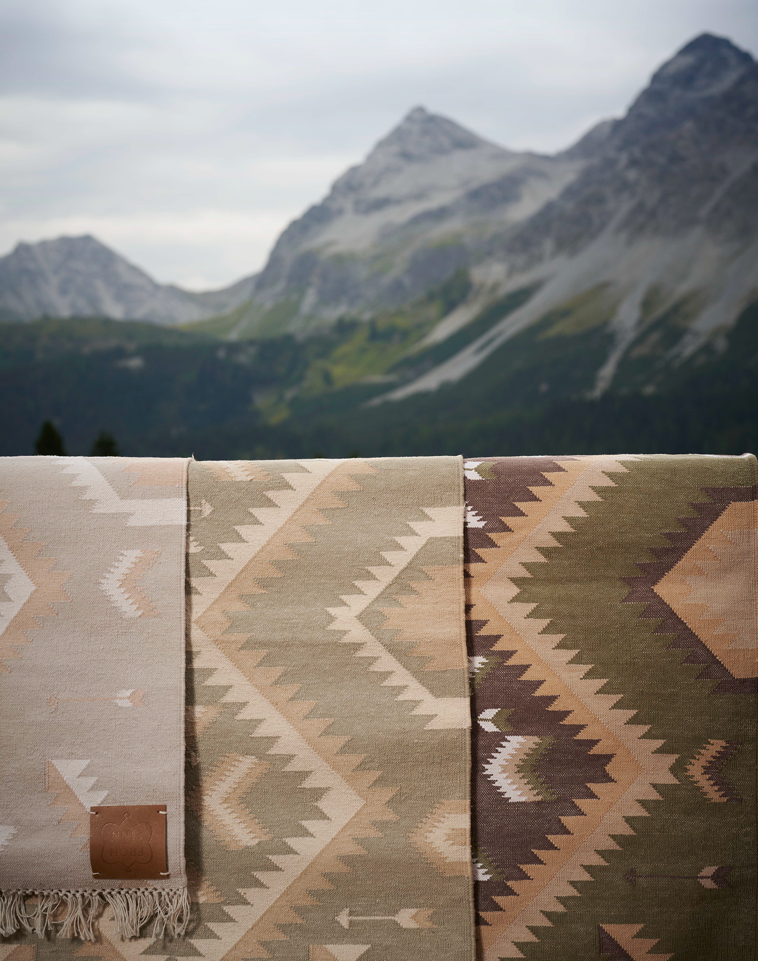 Unsere NAVAJO Kollektion ist vom Handwerk der First Nations People of America inspiriert. Das Foto eines wunderschönen Navajo-«Blankets» aus dem späten 19. Jahrhundert war der Impuls für diese Kollektion. Gestartet im Jahr 2016 in einer Farbstellung, ist dasselbe Muster heute auf Dhurries in über