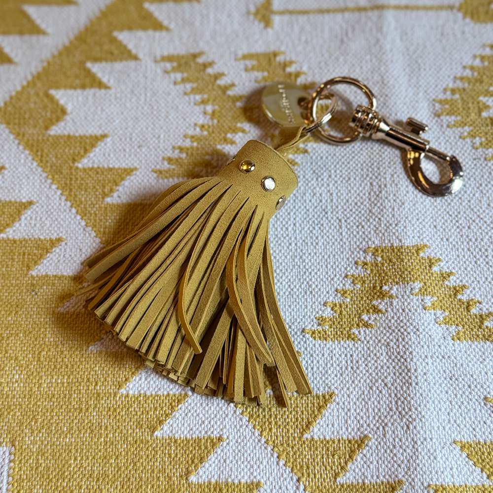 Unser Schlüsselanhänger mit Lederquaste, FROHSINN Logoplättchen und Metallnieten ist ein stylischer Begleiter und cooles Geschenk. Dank des auffälligen Designs ist das Schlüsselsuchen nun passé. Selbst wenn Sie kein Schloss besitzen, macht dieser Anhänger gute Laune und versprüht FROHSINN!
